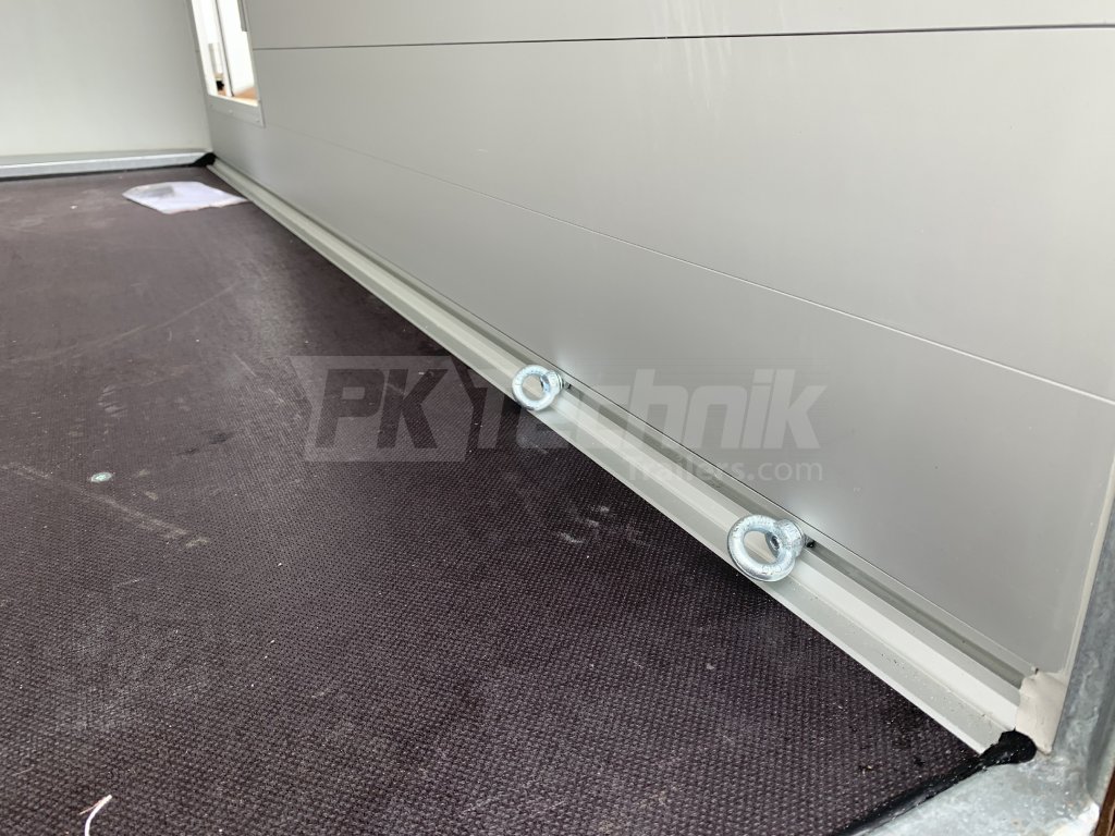 Laminátová monobloková karoserie s integrovanými výztuhami odolnými proti deformacím zajišťuje vysokou tuhost přívěsu, zatímco protiskluzová podlaha z voděodolné přívěsové překližky je vybavena v základu 4 kotevními oky.
