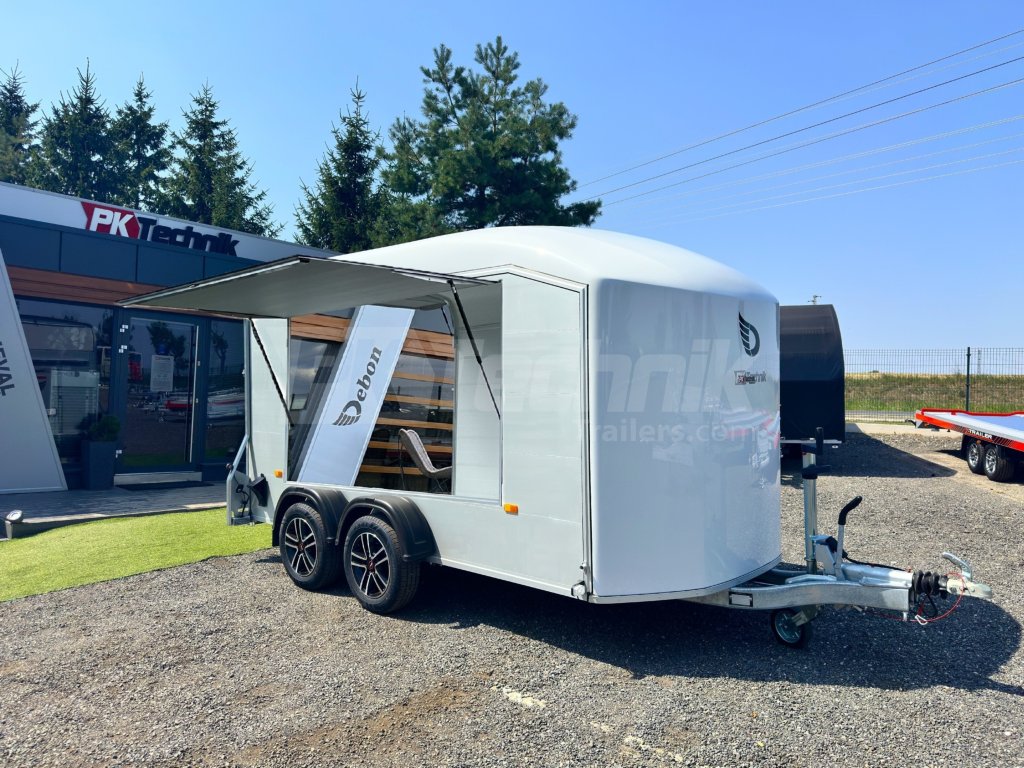 Skříňový přívěs Debon C700 ALU (boční stěny z hliníkových profilů), s boční výklopnou stěnou, od francouzské společnosti Cheval Liberté - Debon, je špičkovým řešením pro přepravu nejrůznějšího nákladu, sportovního vybavení, zejména pro motorsport a volný čas (přeprava motocyklů, přeprava čtyřkolek, přeprava motokár), ale je vhodný také pro komerční využití jako prodejní stánek, pojízdná dílna, nebo k přepravě jakéhokoliv nákladu.