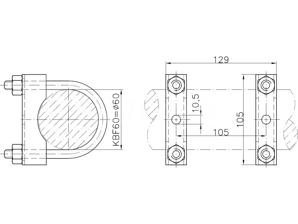Držák KBF/60 klemy opěrného kolečka na oj pr. 60 mm