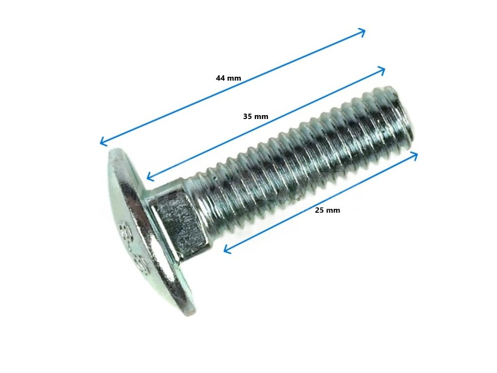 Šroub M8x35, hříbková hlava se čtyřhranem.