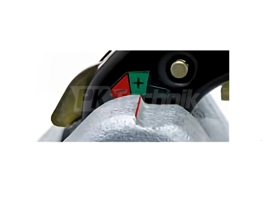Pokud ryska indikátoru ukazuje na znaménko +, není tažná spojka ani kulový závěs opotřebovaný a spojení vozidla a taženého přívěsu je správné. Ovládací rukojeť je jištěna stiskací pojistkou.