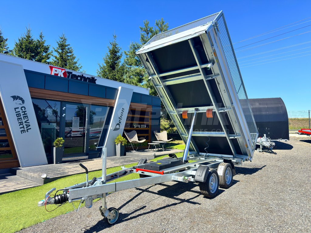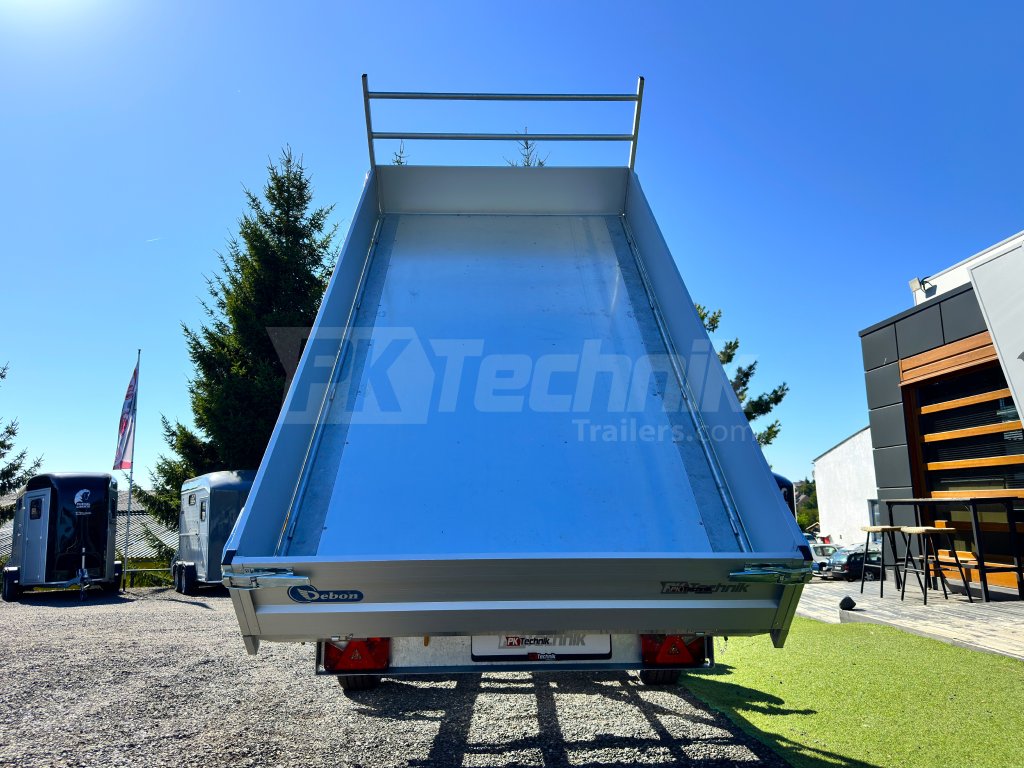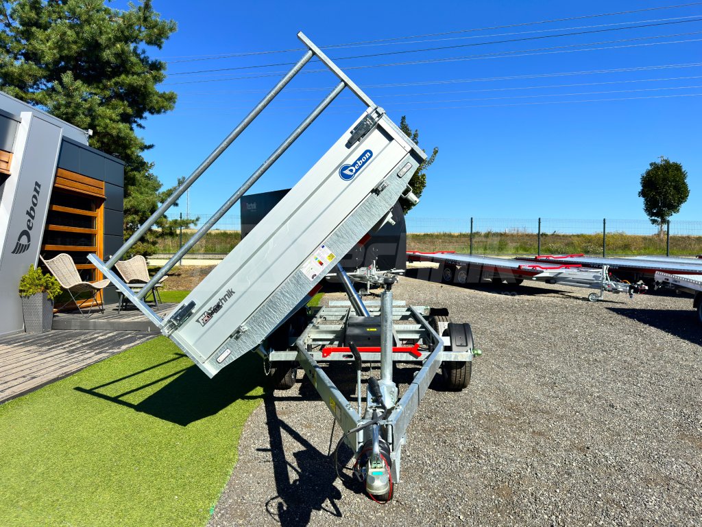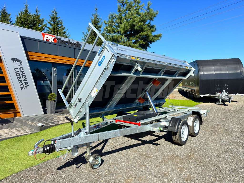 Elektrohydraulicky sklopný valníkový přívěs TIPPER PW 3.6 LUX od renomované francouzské společnosti Debon se díky použití nejmodernějších technologií při výrobě vyznačuje univerzálním využitím a vysokou odolností. Má vestavěný akumulátor pro nezávislé sklápění nástavby, aniž by bylo nutné přívěs připojit ke zdroji. Přívěs je konstruován na ocelovém pozinkovaném rámu, osazen nápravami německé společnosti KNOTT a odnímatelnými bočnicemi z eloxovaných hliníkových profilů EUROLOCK, které lze ze všech stran kompletně odmontovat včetně sloupků, a vytvořit tak rovné plato pro převoz nejrůznějších nákladů. Podlaha přívěsu je vyrobena z voděodolné přívěsové překližky potažené pozinkovaným plechem pro delší životnost a celkovou odolnost. Do ložné plochy je zapracováno 8 kotevních ok pro zajištění přepravovaného nákladu. Přívěs je velmi vhodný pro přepravu automobilů, mechanizace, vícestopých vozidel, bagrů, sekaček, čtyřkolek, nadrozměrného zboží či sypkých materiálů.