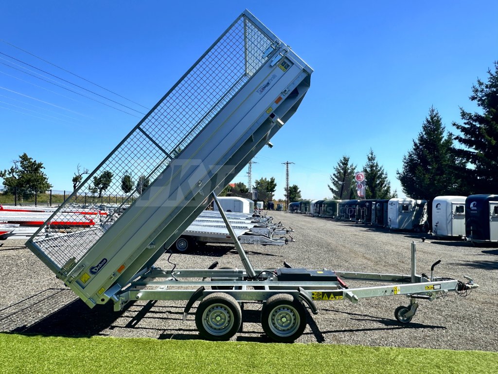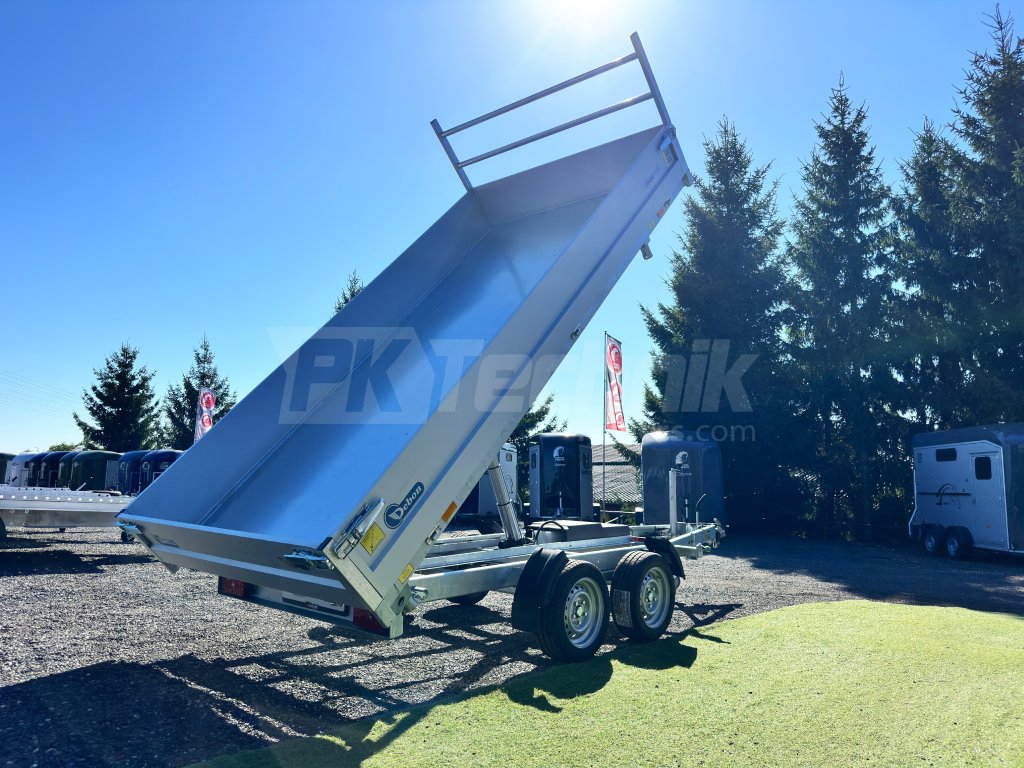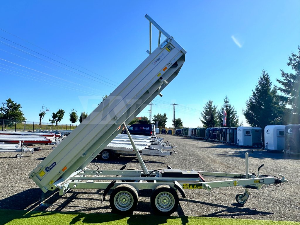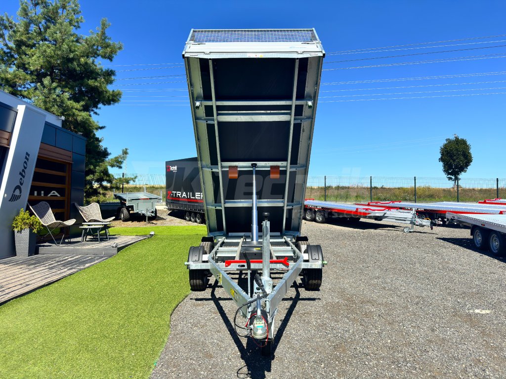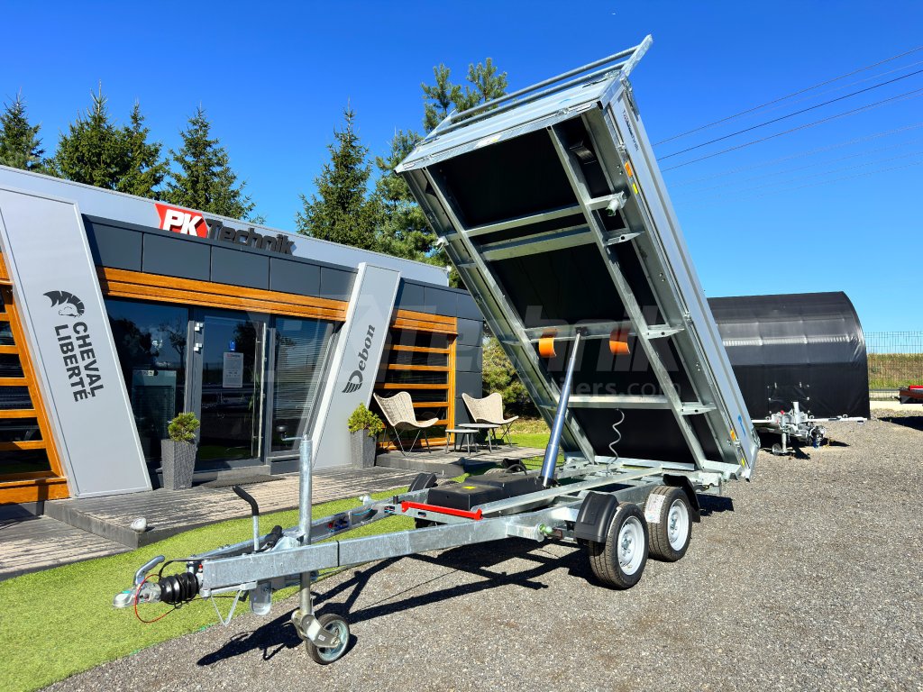 Elektrohydraulicky sklopný valníkový přívěs TIPPER PW 3.6 LUX od renomované francouzské společnosti Debon se díky použití nejmodernějších technologií při výrobě vyznačuje univerzálním využitím a vysokou odolností. Má vestavěný akumulátor pro nezávislé sklápění nástavby, aniž by bylo nutné přívěs připojit ke zdroji. Přívěs je konstruován na ocelovém pozinkovaném rámu, osazen nápravami německé společnosti KNOTT a odnímatelnými bočnicemi z eloxovaných hliníkových profilů EUROLOCK, které lze ze všech stran kompletně odmontovat včetně sloupků, a vytvořit tak rovné plato pro převoz nejrůznějších nákladů. Podlaha přívěsu je vyrobena z voděodolné přívěsové překližky potažené pozinkovaným plechem pro delší životnost a celkovou odolnost. Do ložné plochy je zapracováno 8 kotevních ok pro zajištění přepravovaného nákladu. Přívěs je velmi vhodný pro přepravu automobilů, mechanizace, vícestopých vozidel, bagrů, sekaček, čtyřkolek, nadrozměrného zboží či sypkých materiálů.