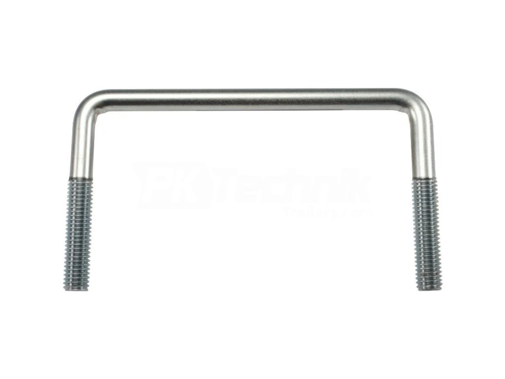 Ocelový, galvanicky pozinkovaný třmen se závity M10. Délka závitů je pevně daná a závit nelze proříznout dál. Průměr kulatiny třmenu je 9 mm.