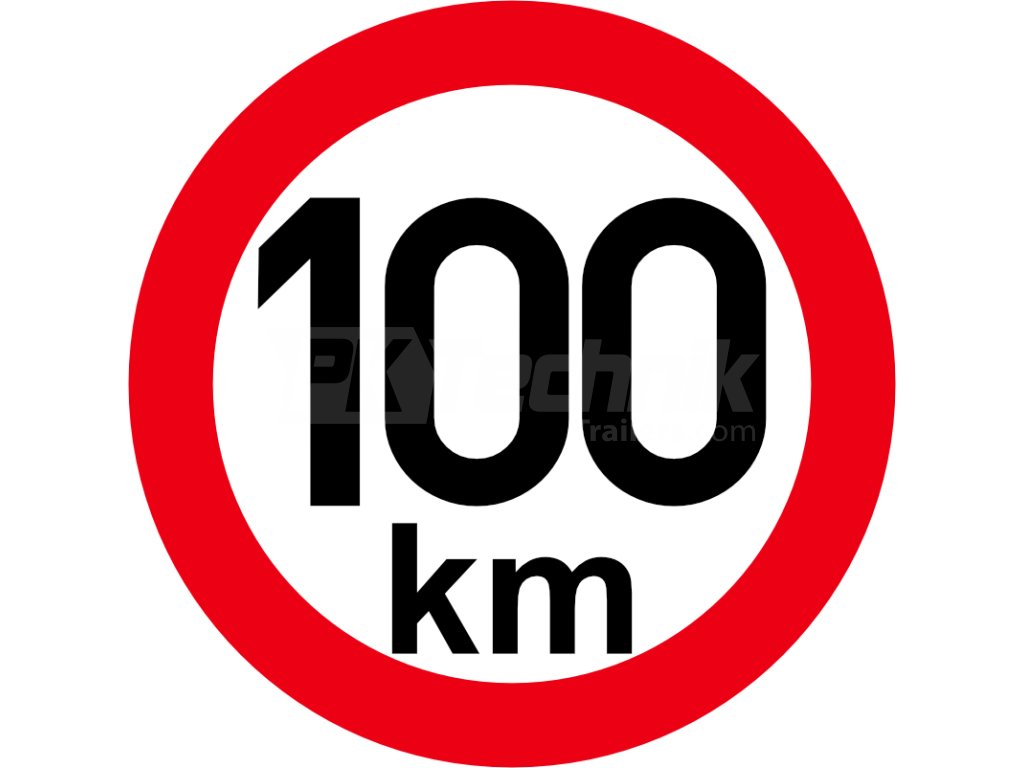 Samolepka s označením nejvyšší povolené rychlosti 100 km/h.