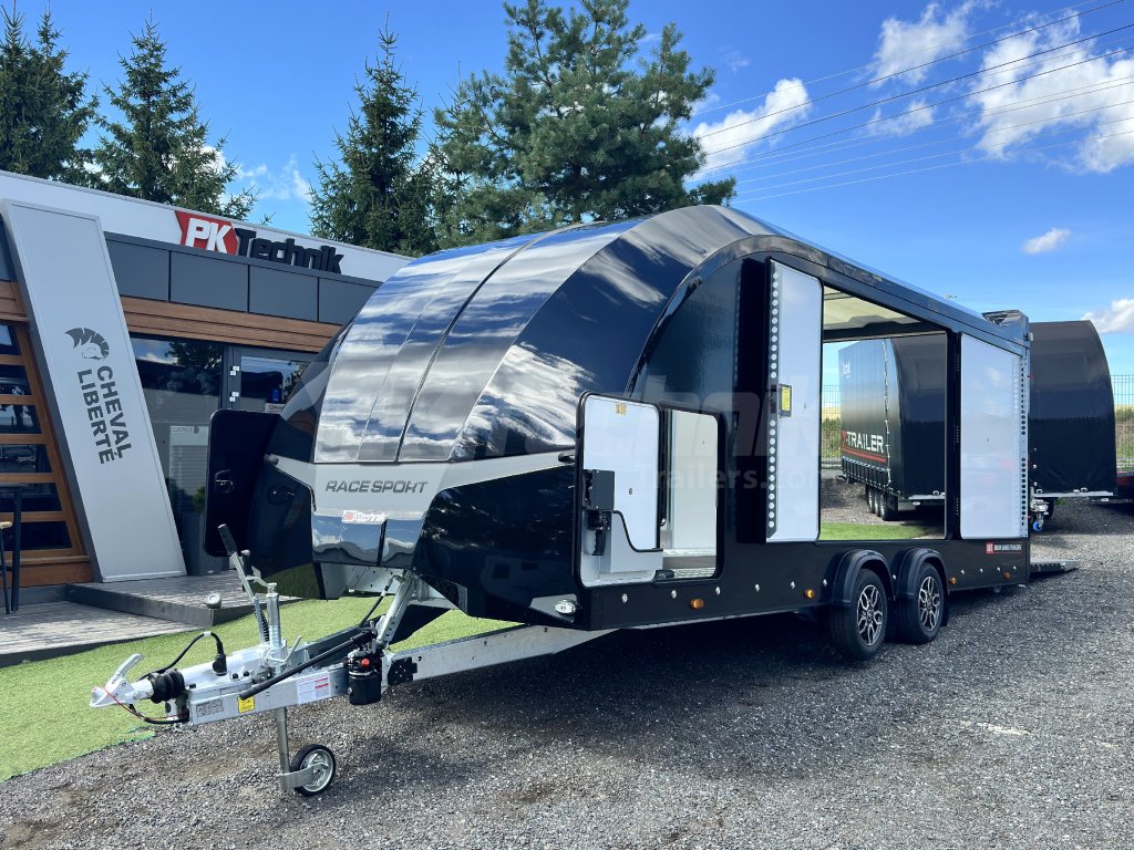 Uzavřený autopřepravník Brian James Race Sport nové generace , modelový rok 2025. Jeho design je tak úchvatný, že budete opravdový profesionál mezi přepravci automobilů, ať už jste kdekoliv na cestách. Budete cestovat s elegancí a jistotou. Vaše vozidlo bude v bezpečí. Oproti svému předchůdci získal sklápěcí mechanismus v hlavním rámu, díky kterému se ještě posunul komfort nakládání extra nízkých vozidel. Nová generace modelu Race Sport přinesla také mnoho výbavy v základní ceně, jako jsou: hliníková kola (4+1), elektrický naviják s dálkovým ovládáním, včetně palubního akumulátoru, kompletní vnitřní i vnější LED osvětlení s dynamickými směrovkami, úložný prostor v podlaze, zadní opěrné nohy, a v neposlední řadě sada zajišťovacích klínů a popruhů pro přepravované vozidlo.