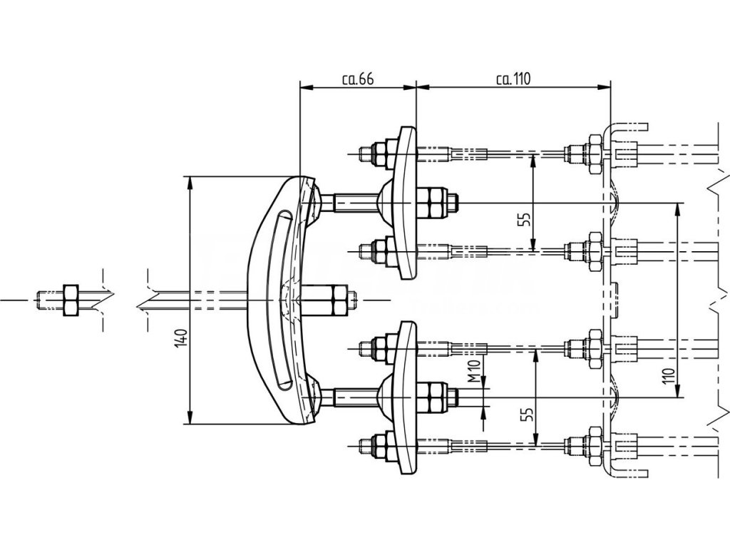 Upozornění: Tandemové vahadlo KNOTT nelze použít pro nápravy AL-KO (jiná rozteč otvorů pro uchycení lanovodů).