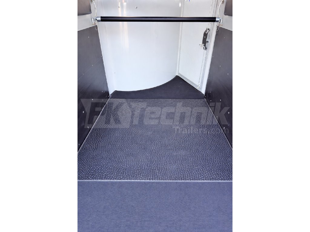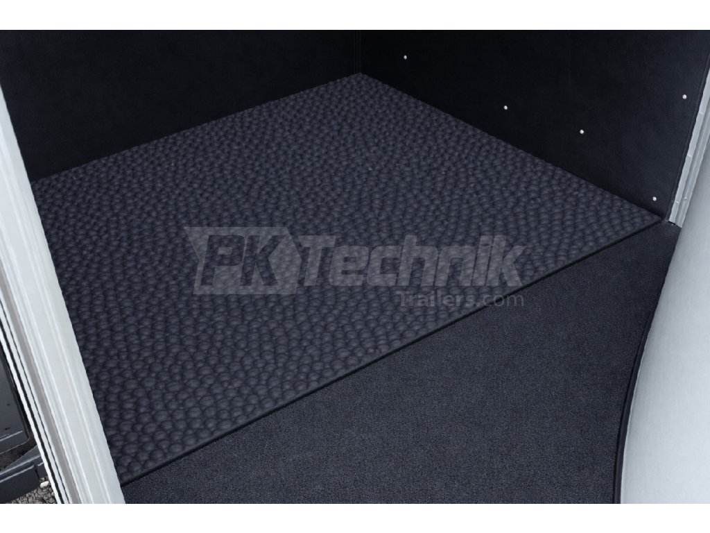Vnitřní přídavná PVC podložka pro přívěs Cheval Liberté ONE chrání podlahu při přepravě a zvyšuje bezpečnost díky protiskluzovému povrchu. Odolný materiál omezuje opotřebení a zajišťuje dlouhou životnost. Otvor pro dělící sloupek a podélný řez umožňují snadnou instalaci bez nutnosti jeho demontáže a přizpůsobení podmínkám v přívěsu.
