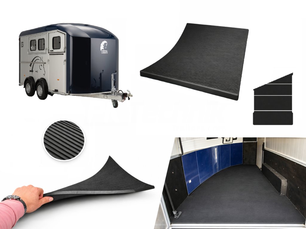 Vnitřní přídavná PVC podložka pro přívěs Cheval Liberté MAXI 3 je určená k ochraně podlahy přívěsu, zejména při přepravě okovaných koní. Pryžová podložka je rozdělena na čtyři části pro jednoduchou instalaci do vnitřního prostoru přívěsu. Použití této ochranné vrstvy je v praxi doporučené, jelikož pomáhá předcházet poškození nebo prokopnutí originální podlahy, které výrobci běžně nepovažují za výrobní vadu. Díky vyšší hmotnosti (cca 50 kg) může mírně ovlivnit užitečné zatížení přívěsu.