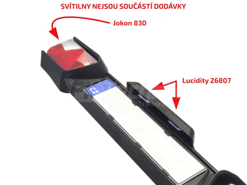 Univerzální rampa určená pro upevnění registrační značky, osvětlení registrační značky a zadních sdružených svítilen na přívěsy či nosiče jízdních kol. Lehká konstrukce z kvalitního odolného plastu umožňuje nastavení celkové šířky v rozmezí od 1200 mm do 1400 mm.