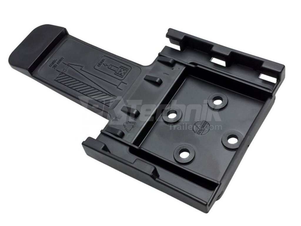 Kvalitní plast vyráběný z nerecyklovaného granulátu zajišťuje dlouhou životnost, pevnost a pružnost použitého materiálu. Držák je opatřen 4 otvory pro přinýtování nebo přišroubování šrouby M6 (spojovací materiál není součástí dodávky). Pro uchycení doporučujeme použít vždy min. dva otvory ve svislé nebo vodorovné ose držáku. Středová rozteč děr ve svislé i vodorovné ose je 40 mm.