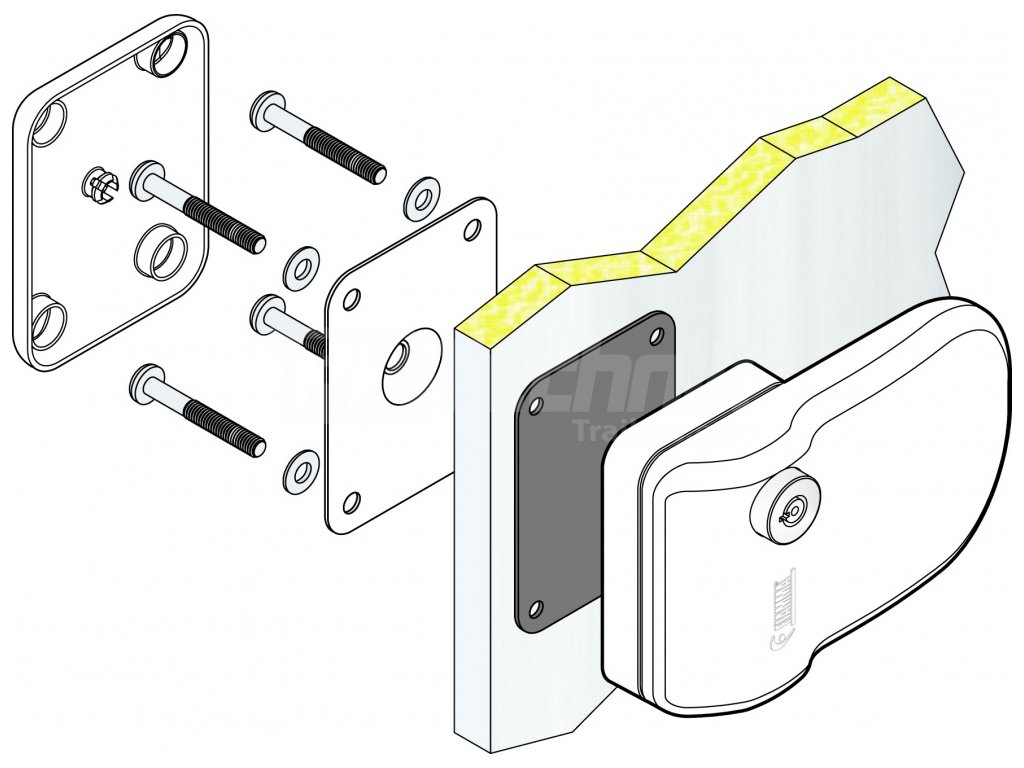 - Montáž lze provést skrze stěnu pomocí šroubů a vnitřní upevňovací desky