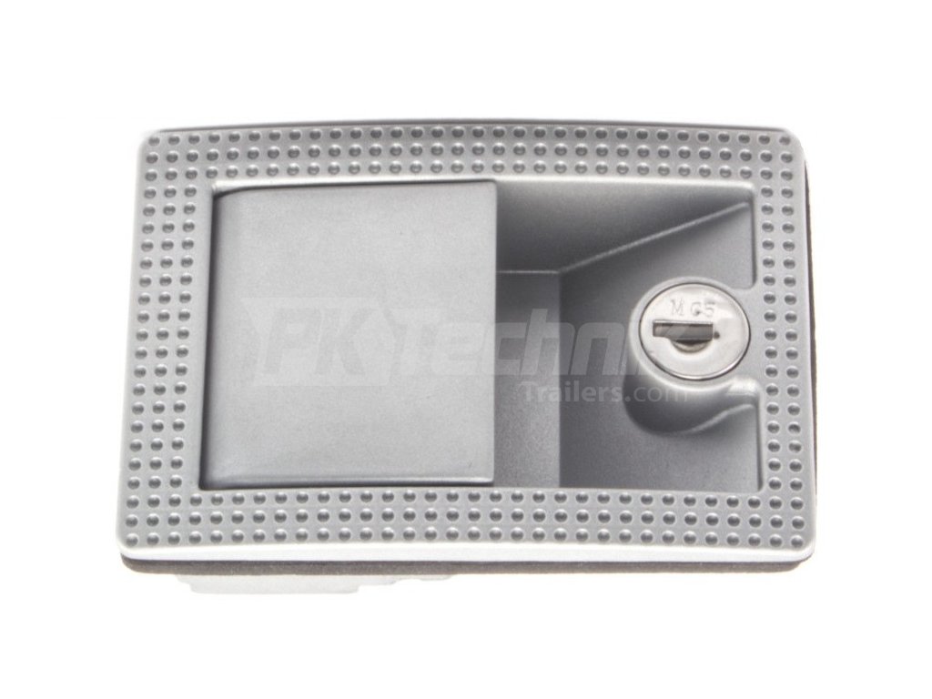 Vnější díl zámku pro boční dveře přívěsů. Tento díl je opatřen zámkovou vložkou, klikou a dvěma klíči.